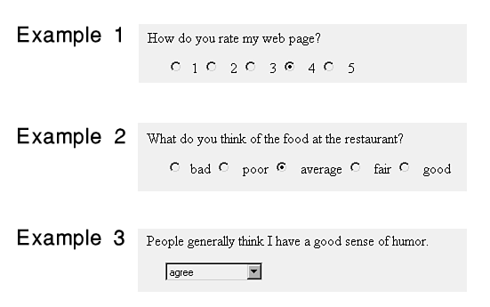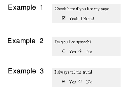Figure 18.11:Boolean questions can be answered with checkboxes or radio buttons.