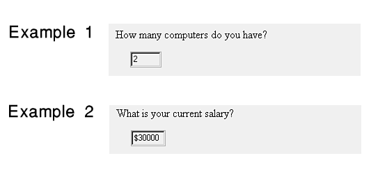Use a number question when you need numerical input from the user. A typical question is How many fingers are on your right hand?. Figure 18.15 shows other examples.