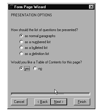 The third screen of the Form Page wizard, shown in Figure 18.2, appears next. You use it to