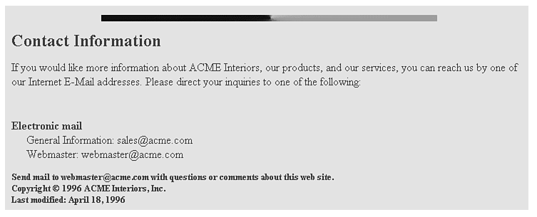 Telephone number: 313-555-1212 Fax number: 313-555-1212 Webmaster's E-mail address: webmaster@www.provider.com E-mail for general information: sales@acmecorp.com