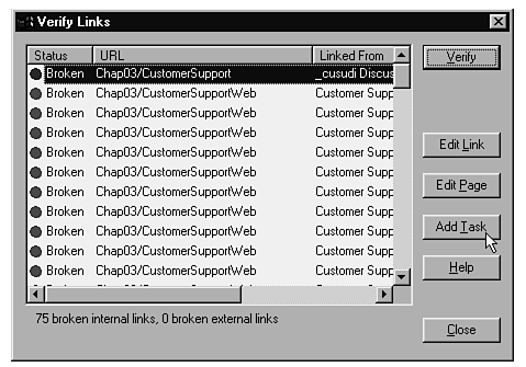 Figure 7.7 : You can add a task automatically when you verify the links in your web.