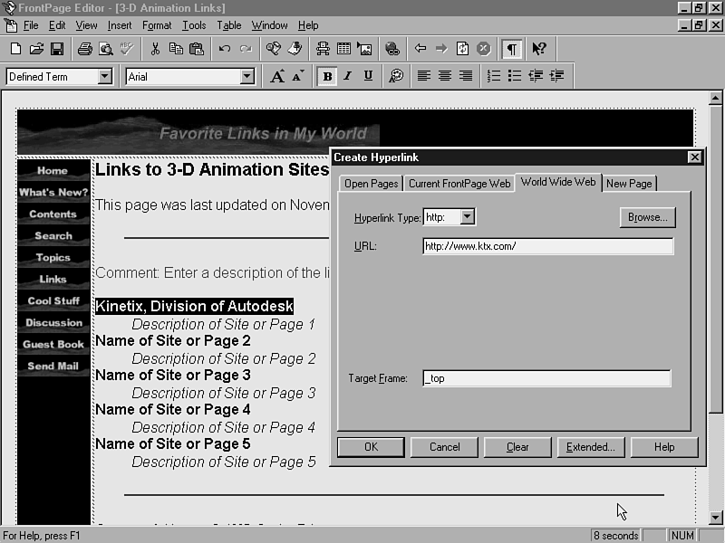 dialog box opens. Select the Current FrontPage Web tab. Double-click
