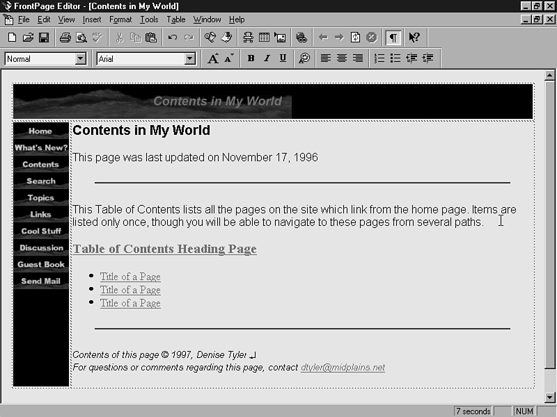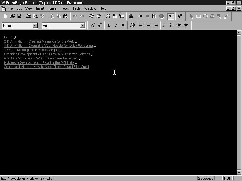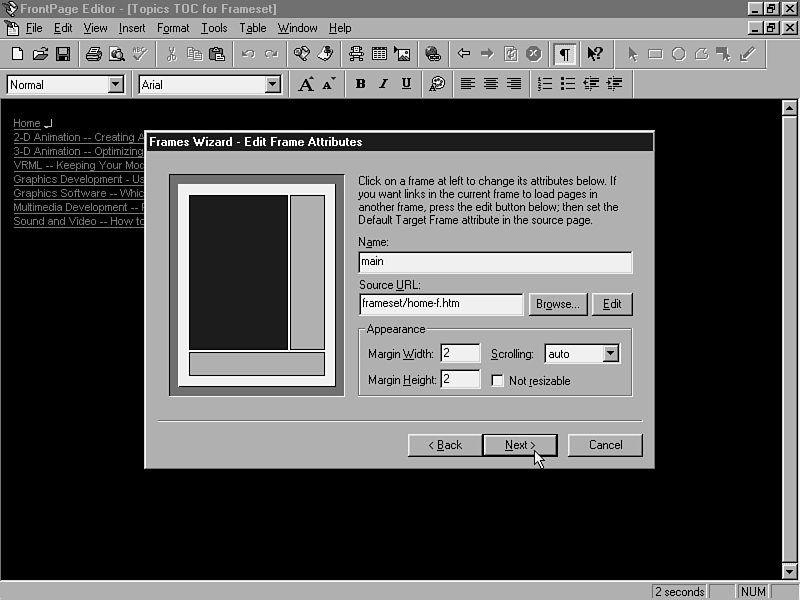 TOC for Frameset, shown in Figure 18.25. This page appears at