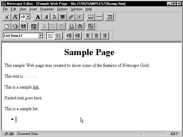 Figure 27.12: Netscape Gold will take care of where the list prefix goes.