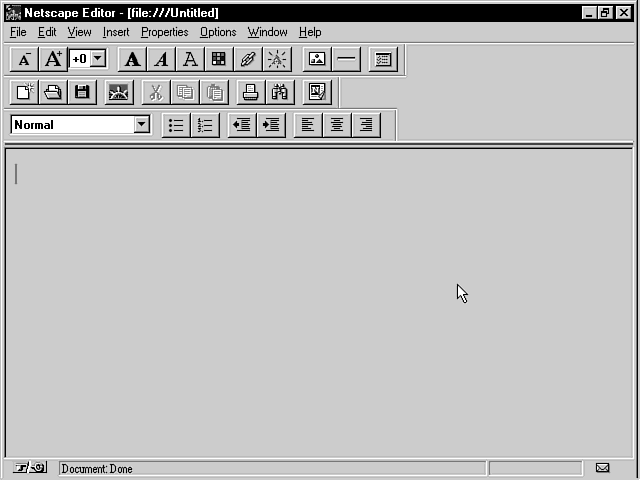 Because it's WYSIWYG, the HTML portion of Netscape Gold makes maneuvering through an HTML document easy. Anybody who's ever used a text editor or word processor will find Netscape Editor very easy to work with. The arrow keys move the cursor in the corresponding directions. You can also go to the next or previous screen of your Web page with the Page Up and Page Down keys, respectively.