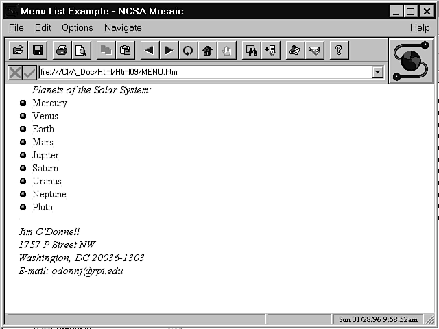Figure 9.16 shows how this document displays in Netscape Navigator. Other browsers may format this text differently.
