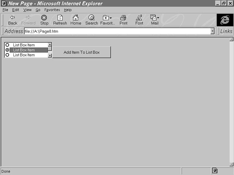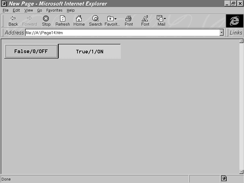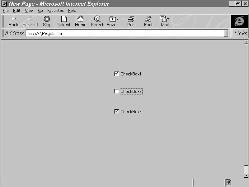 A lot of the Microsoft Forms controls discussed in this chapter are as Microsoft implements the HTML forms. When Internet Explorer encounters an <INPUT TYPE=CHECKBOX> tag in an HTML document, for example, it calls its CheckBox control to implement it. Therefore, it is not necessary for you to implement HTML form elements by directly accessing the controls, since you can achieve the same thing using standard HTML 3.2. However, there are instances where you want to use the controls directly. Other reasons are to put form elements into an HTML layout or to use the control to achieve a special effect in these controls that is not possible when using it through standard HTML. |