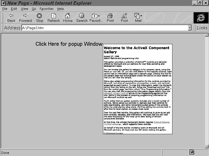 Figure 13.3 : Microsoft IE30 Popup Window control