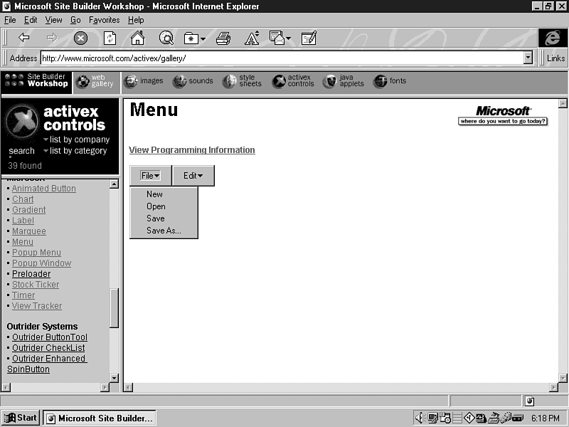 providing other controls through its ActiveX Gallery Web site