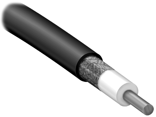 Here is a cutaway view of a coaxial cable.