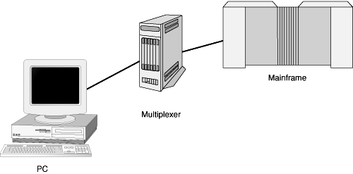 Figure 16.1 shows a PC-direct-to-large computer link of this sort.