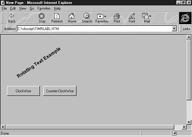 Do you see a pattern in the examples? Almost all of the functionality built into the ActiveX controls is handled for you. VBScript can affect the properties and produce the types of animations that make a Web site interesting. Creating animations with VBScript is not really a matter of calling a particular series of functions but of creatively using the objects that are at hand. As mentioned before, more and more objects will become available, and some will handle more traditional style path and frame-based animations-but with simple property manipulation you can achieve some interesting and powerful results. Look at the StockTicker and Gradient controls. The Stockticker can display information much the same way the marquee can, but it uses a completely different type of file format, which is good for business applications. Can you see a way to make color-cycling animated page breaks using the gradient object? By using a Timer object and adjusting the StartColor and EndColor properties, it is a sure bet that you can create an HTML page that has content separators that no one has ever seen before.