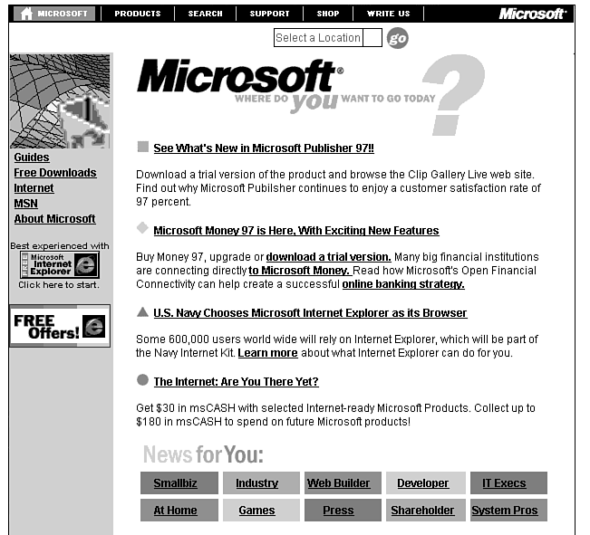 The ActiveX controls released by Microsoft after the release of Internet Explorer 3.0 and the ActiveX Control Pad are posted at Microsoft's ActiveX Component Gallery at www. microsoft.com/activex/controls. The ActiveX Gallery is the site to visit when you need an ActiveX control for your projects. You will find there a list of all available ActiveX controls from Microsoft and other companies, descriptions of the controls, and the actual controls. Microsoft's ActiveX controls are free, but most of the other ActiveX controls aren't-and you should read the documentation and distribution notes before you download and use them.