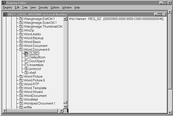 Figure 11.2. The CLSID registry entry for a Microsoft Word document.