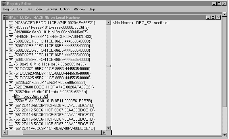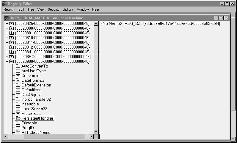 Figure 11.2 displays the CLSID registry entry for a Microsoft Word document.