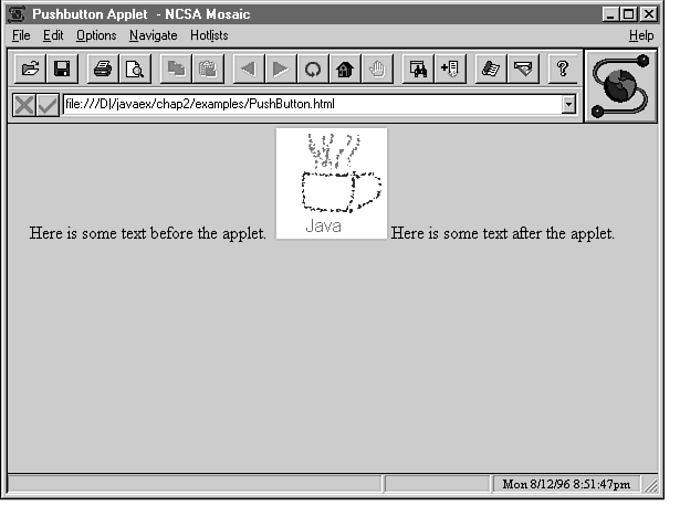 Figure 2.1 : A Java-enabled browser displays the applet defined by the <APPLET> tag.