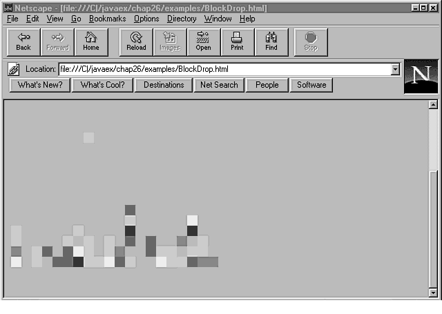 Figure 20.1 shows the BlockDrop applet in action. The complete source code to BlockDrop.java is on the CD that comes with this book.