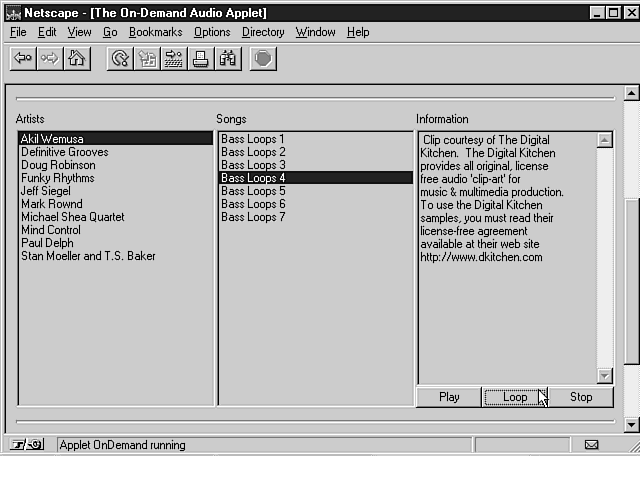 Figure 38.2 : The OnDemand applet is ready to play an audio stream.