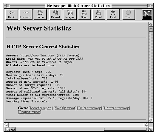 I particularly like Getstats because it comes with a form so that you can run it from your Web browser. Figure 27.9 shows the form, and Figure 27.10 shows the output.