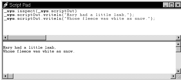 | A: | You can write to the Script Pad window, but it does little good because the Script Pad window is not visible in the IntraBuilder Server. On the other hand, it does little harm, except causing the script to run a little slower. If you need to track information in a production application, consider writing it to a log file or storing information in a table. |