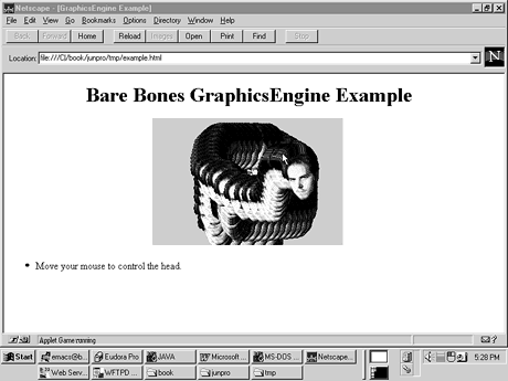 GraphicsEngine.java, Game.java, and example.html. You