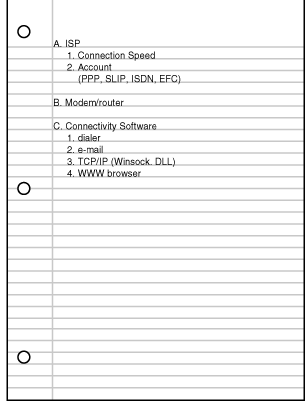 ISDN allows the user to search out and retrieve information two to four times faster than an analog modem. The ISDN service allows the user's computer to transmit a totally digital signal all the way through the phone company's network to the ISP. A modem, on the other hand, is extremely inefficient, and as a result, modem transmission speeds are limited. Obviously, the ISP must have ISDN network connections to support this type of service. Users can place ISDN calls with the help of a device called a terminal adapter (TA). Think of the TA as a modem for digital computer calls. This is not accurate technically because there is no modulating of the computer's digital "talk" into sounds, but the TA is attached to the computer in the same way as a modem. Subscribers use dial-up software that allows them to dial a PPP or SLIP connection over the ISDN line. This account also will get an address assigned when dialing in.