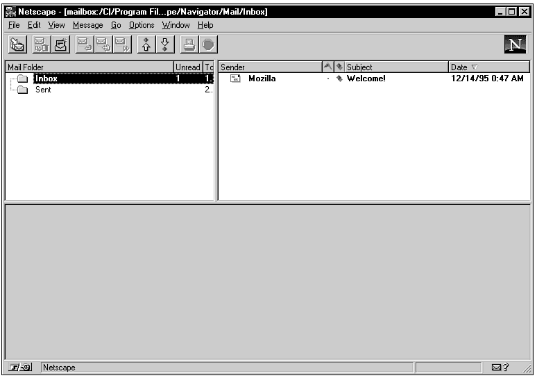 Netscape's Web browser comes with a mail reader included at no extra charge. It isn't as feature-rich as Eudora, but it does provide the basics, such as message composition and storage, address books, message sorting, and mailbox compression (see Figure 13.10). Netscape's plus is its savings in system resources, especially if the user plans to utilize mail and Web browser applications concurrently. Netscape's Web browser is available for the various Windows operating systems, the Mac, and most UNIX operating systems.