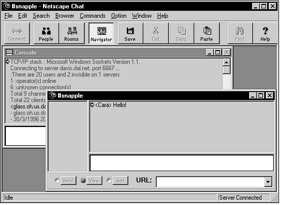 A couple of the most exciting new applications on the Web are Internet Phone, which lets users talk, real-time and free of long distance charges, over the Internet, and Chat, which lets users carry on conversations real-time by typing messages back and forth (like chat rooms on America Online or forums on CompuServe). New clients are arriving on the market on a daily basis to perform both Internet Phone and Chat functions. Netscape is currently developing both an Internet phone plug-in in conjunction with InSoft, Inc. and Chat functions for use with its browser. (See Figures 13.19 and 13.20.) IBM and Microsoft likely will follow suit.