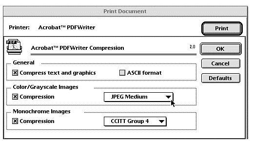 Figure 23.3: Selecting the appropriate graphic compression for your PDF document..