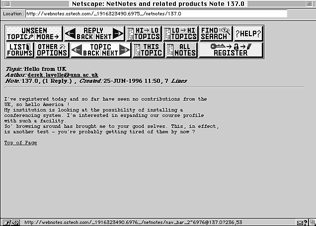 The NetNotes (recently purchased by SpyGlass) home site, shown in Figures 37.9 and 37.10, has a demonstration that gives a good sense of how group message boards work.