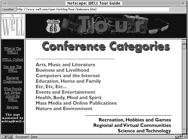 Figure 37.2: The Well (http://www.well.com) was one of the first Web conferencing sites, and it continues to be one of the most active.