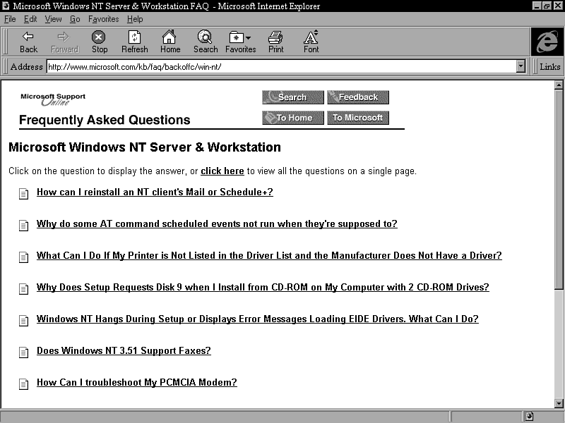 Figure 45.4: Microsoft Windows NT's FAQ can be found on the Internet.