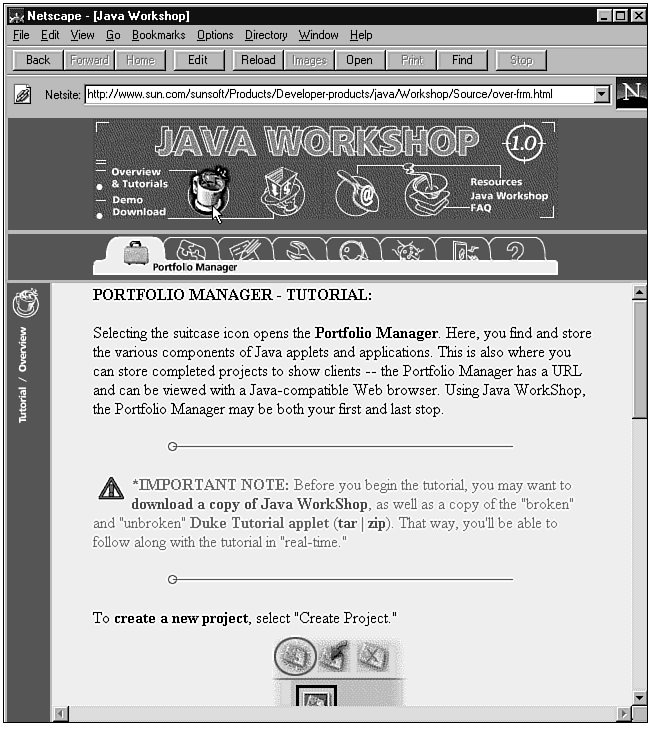 Figure 45.5: Sun Microsystems Java Workshop is an online tutorial.