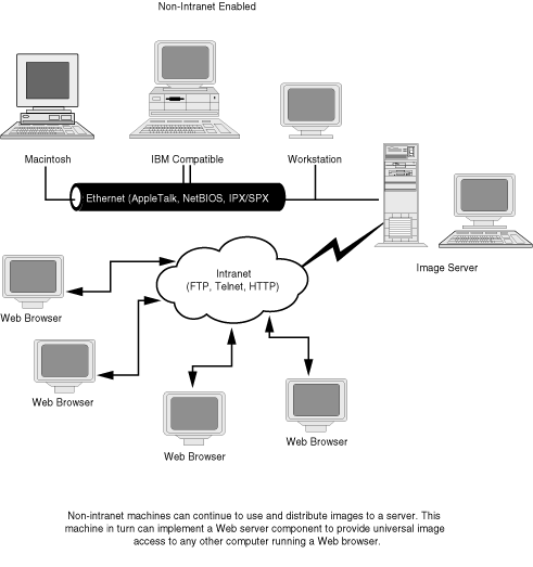 The inherent nature of the intranet to provide seemingly ubiquitous information access unlocks the knowledge trapped in the infrequently used applications. For example, a company might have a sole graphics designer using a complicated set of graphics tools to provide users with images; that setup might be replaced with the same designer having a graphics "pool" with a Web browser on users' desks to scan through all the available graphics before making a selection. The low-frequency applications could still be used, but the image files could be placed in a universal area readable by a browser that supports viewing standard graphics formats (for example, TIFF, EPS, or GIF).
